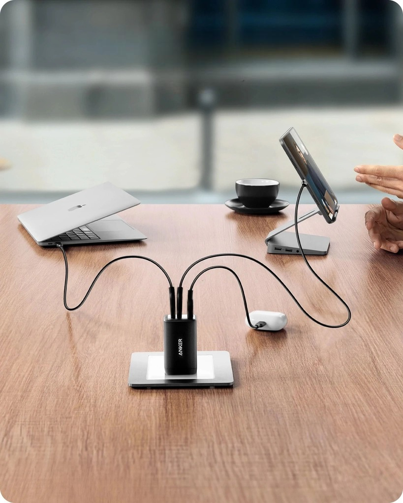 Với 3 cổng sạc (2 cổng USB-C và 1 cổng USB-A), bạn có thể sạc đồng thời ba thiết bị mà không phải lo lắng về việc thiếu cổng sạc. Điều này rất tiện lợi cho những ai cần sạc nhiều thiết bị cùng lúc trong những chuyến đi hoặc tại văn phòng.