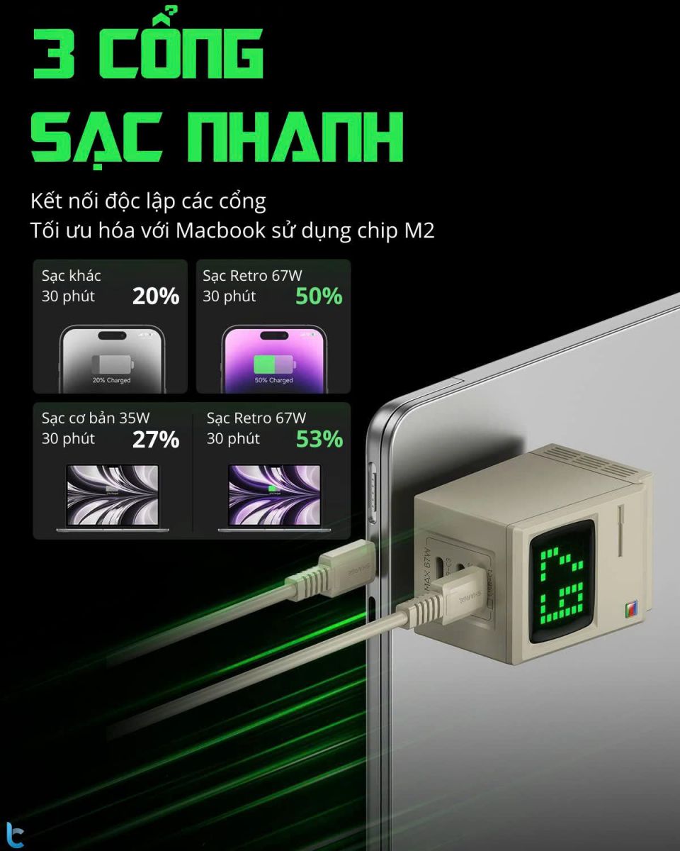 Shargeek Retro 67W là sự kết hợp độc đáo giữa công nghệ sạc nhanh hiện đại và thiết kế retro lấy cảm hứng từ Macintosh cổ điển. Không chỉ là củ sạc, đây còn là một món phụ kiện mang tính sưu tầm, vừa tiện dụng vừa đầy cá tính.