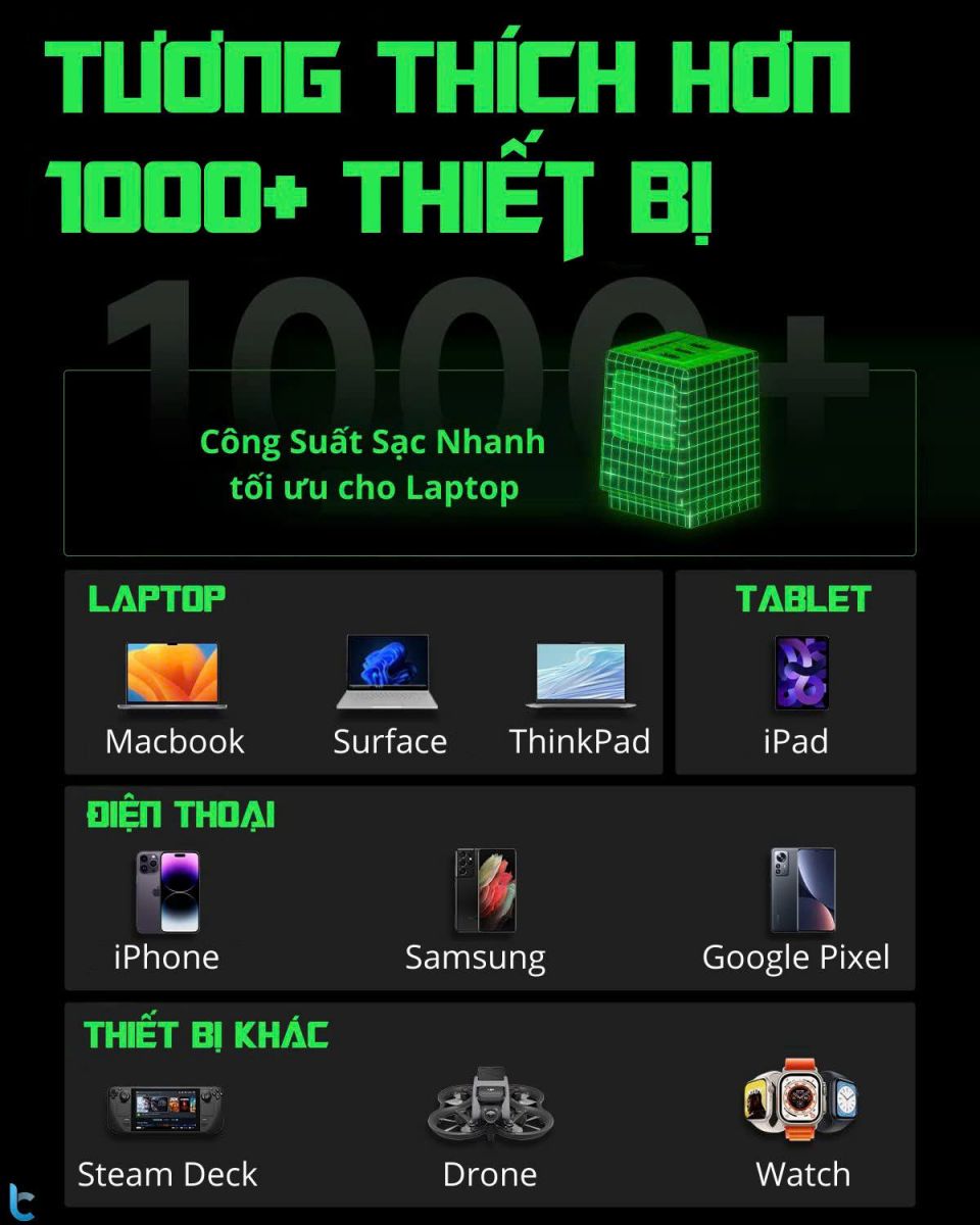 | Tương thích | PD, QC ,SCP/FCP, v.v. |