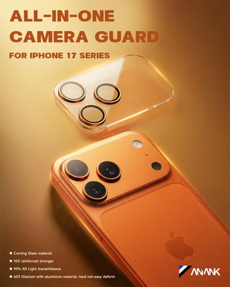 Kính cường lực bảo vệ camera nguyên cụm ANANK – All-in-One Camera Guard cho iPhone 17 Promax.