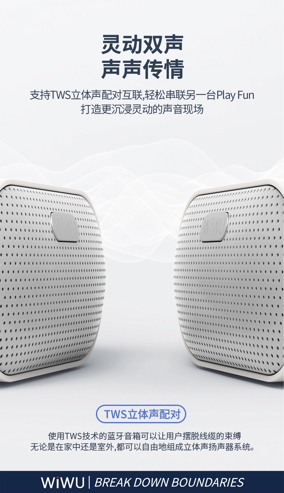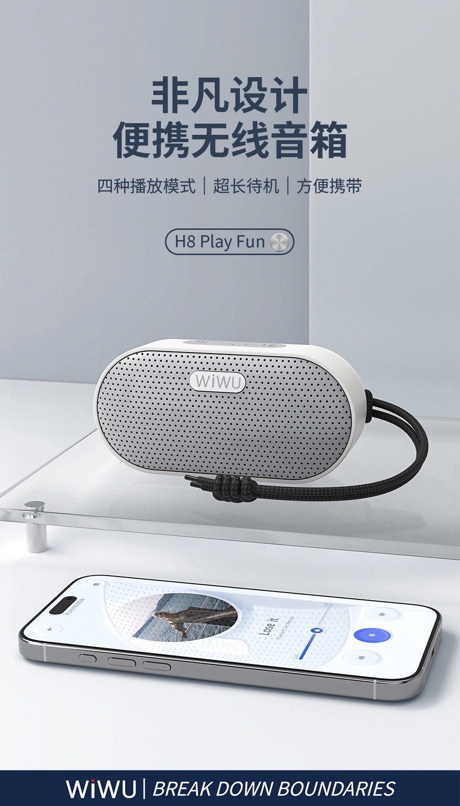 Loa không dây di động WiWU Play Fun H8 là người bạn đồng hành lý tưởng cho những ai yêu thích âm nhạc và phong cách sống năng động. Chất liệu nhựa ABS, silicone và kim loại không chỉ mang lại độ bền cao mà còn tạo nên vẻ ngoài hiện đại, thời trang.