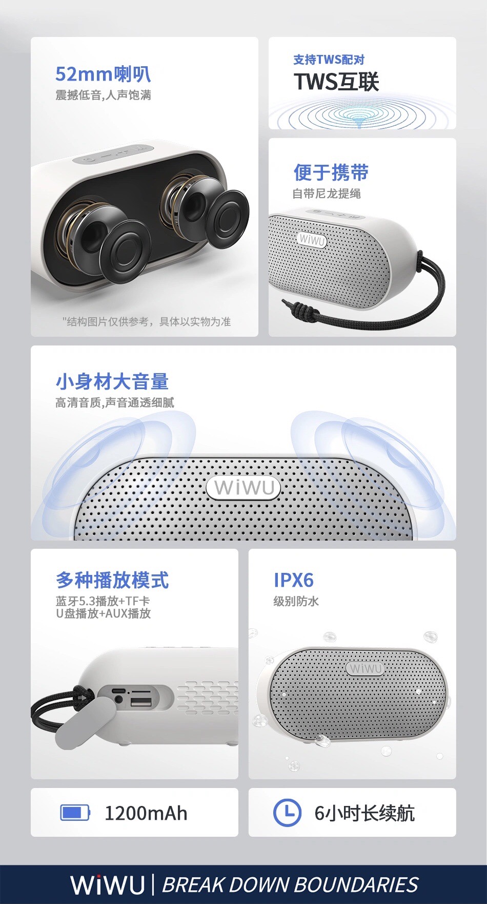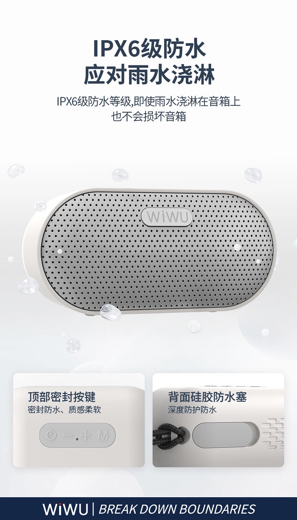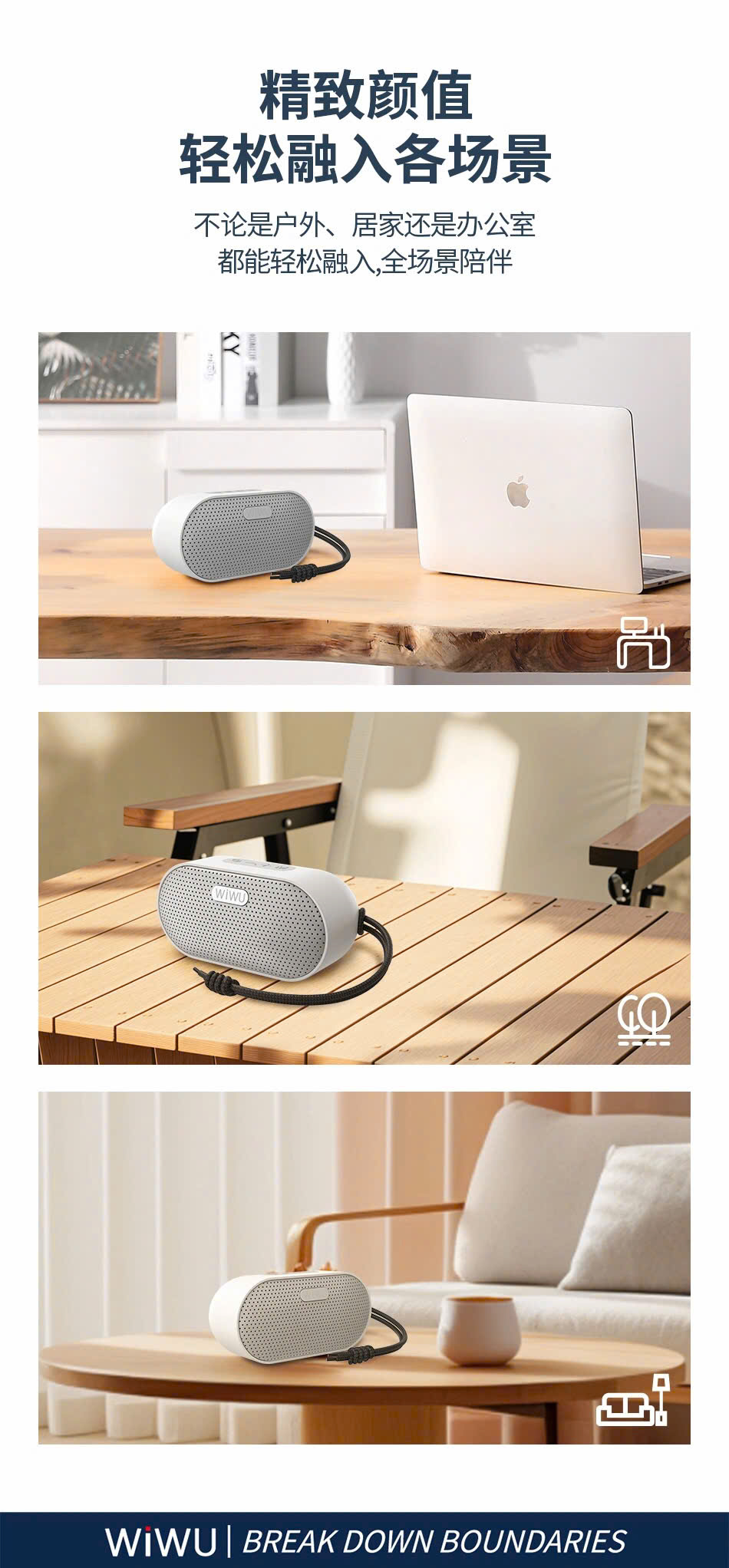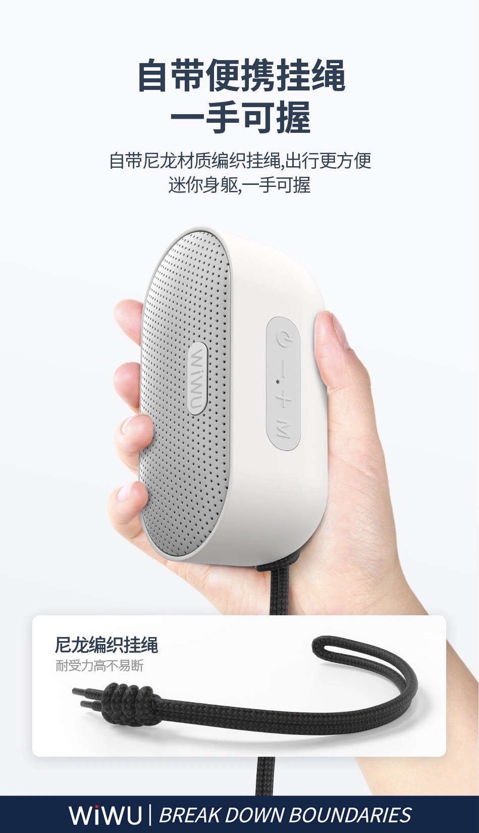 WiWU Play Fun H8 là loa không dây di động nhỏ gọn, năng động, lý tưởng cho những buổi dã ngoại, tụ họp bạn bè hay thư giãn tại nhà. Với âm thanh mono sống động, kết nối Bluetooth 5.2 ổn định và thời lượng pin lên đến 6 giờ, sản phẩm mang đến trải nghiệm giải trí liền mạch. Thiết kế dây treo tiện lợi, chống nước IPX6 – thoải mái mang theo mọi nơi, mọi lúc!