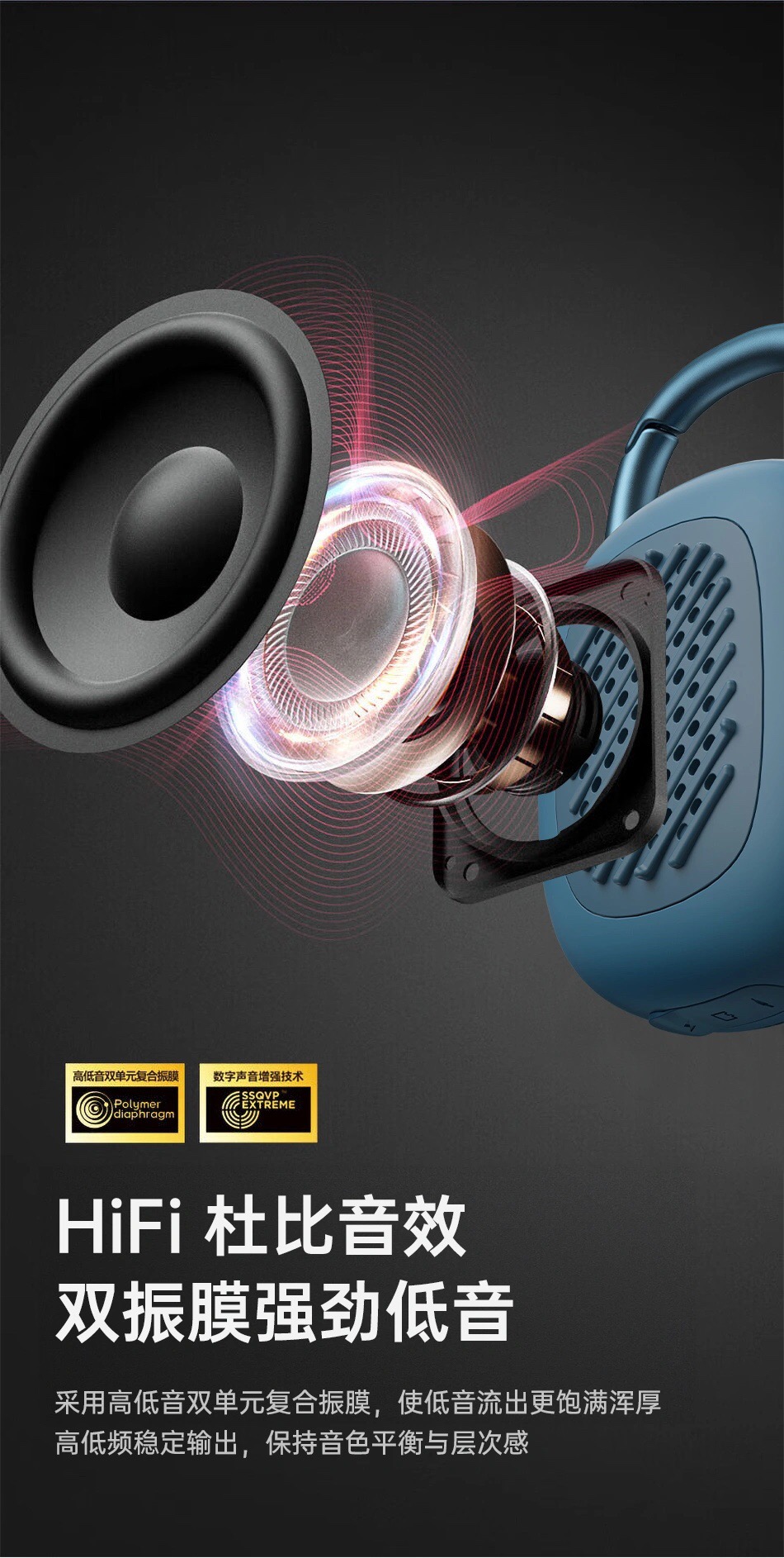 Được trang bị loa đơn 45mm với nam châm kép 16 lõi và màng cộng hưởng bass, WiWU Clip Fun H3 mang đến âm thanh mạnh mẽ, rõ ràng và âm trầm sâu lắng. Công nghệ Bluetooth 5.2 cùng chip Bluetron AB5363B đảm bảo kết nối ổn định và tiết kiệm năng lượng.