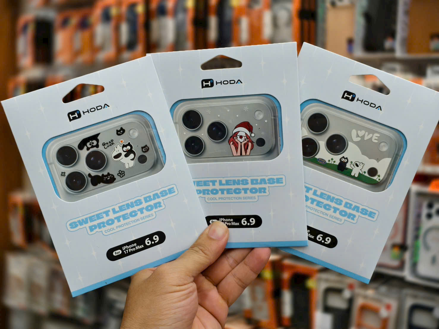 Miếng bảo vệ camera Hoda x Sanrio cho iPhone 17 Pro Max không chỉ giúp chống trầy xước, hạn chế va đập hiệu quả mà còn nổi bật với thiết kế nhân vật Sanrio siêu dễ thương. Sản phẩm có độ trong suốt cao, không làm giảm chất lượng ảnh, đồng thời dễ dán, ôm khít cụm camera, vừa bảo vệ vừa tăng tính thẩm mỹ cho điện thoại.