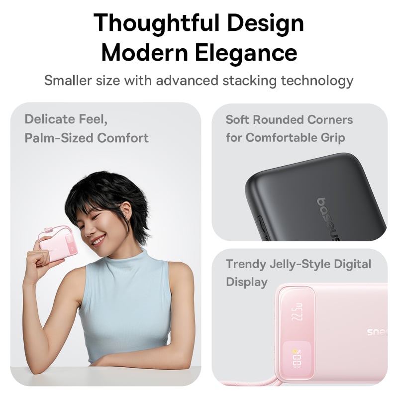 Nếu bạn thường xuyên quên mang cáp sạc hoặc muốn một viên pin dự phòng tiện lợi – gọn gàng – sạc nhanh, thì Baseus EnerFill FC11 22.5W chính là lựa chọn lý tưởng. Thiết kế thông minh tích hợp 2 cáp sạc sẵn, kết hợp công suất sạc nhanh mạnh mẽ, giúp bạn luôn chủ động năng lượng trong mọi tình huống.
