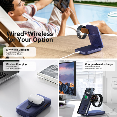 Choetech B750 không chỉ là một pin dự phòng mà còn là một đế sạc đứng không dây. Bạn có thể sử dụng sản phẩm để sạc không dây cho điện thoại, smartwatch, và cả tai nghe không dây, tất cả trong một thiết bị gọn nhẹ.