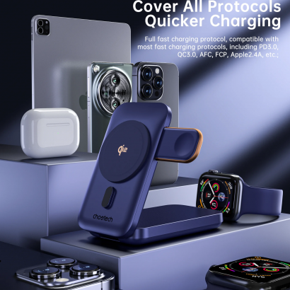 CHOETECH B750 Qi2 3-in-1 – Pin sạc dự phòng 10,000mAh tích hợp đế sạc không dây chuẩn Magnetic Qi2, hỗ trợ sạc nhanh iPhone (15W), AirPods (5W), Apple Watch (2.5W) cùng lúc. Thiết kế gập linh hoạt, nhỏ gọn, dễ mang theo, sạc tiện lợi mọi lúc, mọi nơi!