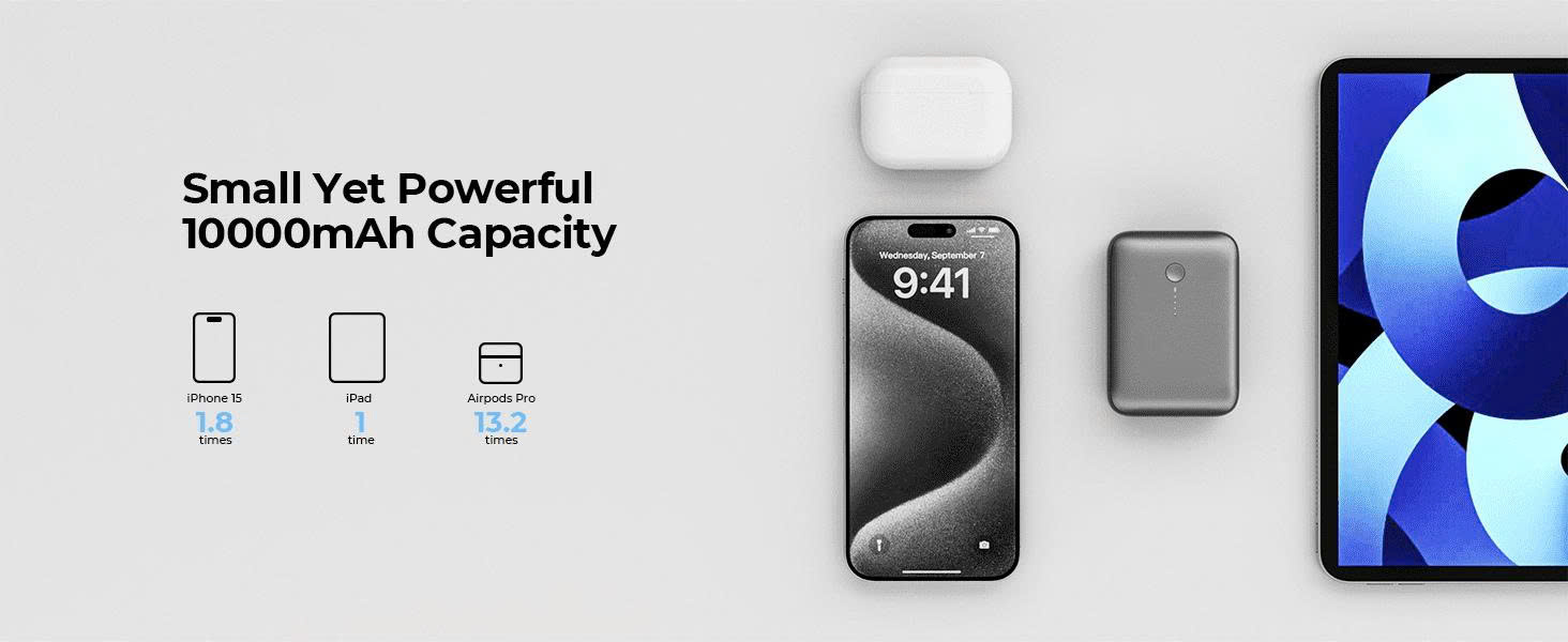 Nhỏ mà có võ – dung lượng 10.000mAh đủ dùng cả ngày, hỗ trợ sạc nhanh PD 20W & SCP 22.5W cho iPhone, Samsung, Huawei chỉ trong tích tắc.
