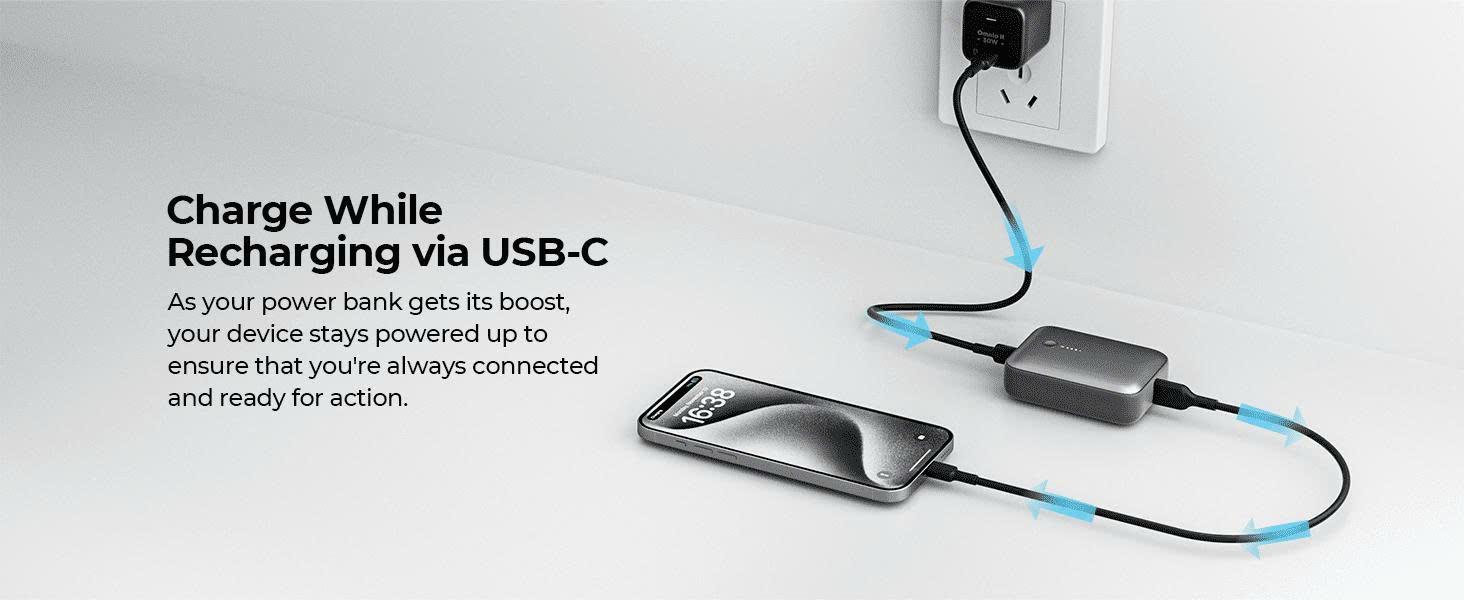 Với công suất PD 20W & SCP 22.5W, pin dễ dàng nạp đầy smartphone từ 0–50% chỉ trong vài chục phút. Dung lượng 10.000mAh đủ sạc 1–2 lần cho hầu hết thiết bị di động, quá lý tưởng cho những chuyến đi xa hay ngày làm việc dài.