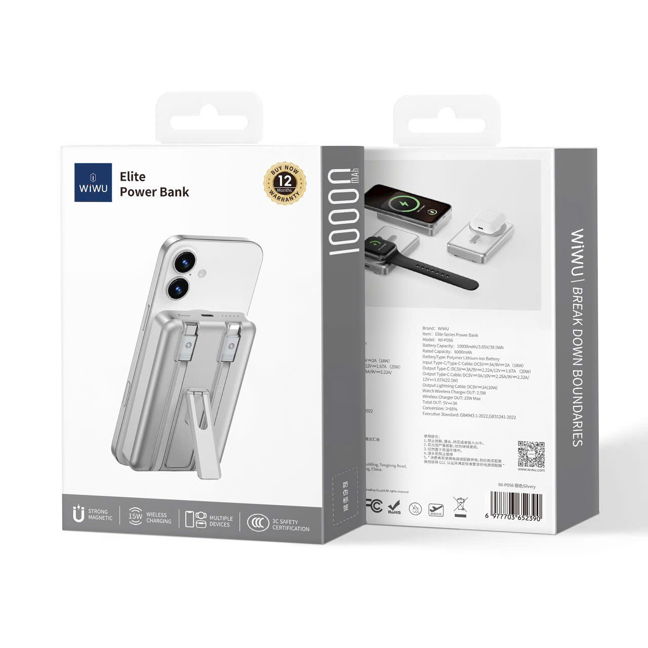 Sạc dự phòng WiWU Wi-P056 5-in-1 Magsafe 10.000mAh sở hữu thiết kế đa năng với khả năng sạc không dây, hỗ trợ sạc nhanh, tích hợp chân đế và nhiều cổng sạc tiện dụng. Nhỏ gọn – hiện đại – tiện lợi, đáp ứng tối đa nhu cầu di động của bạn.