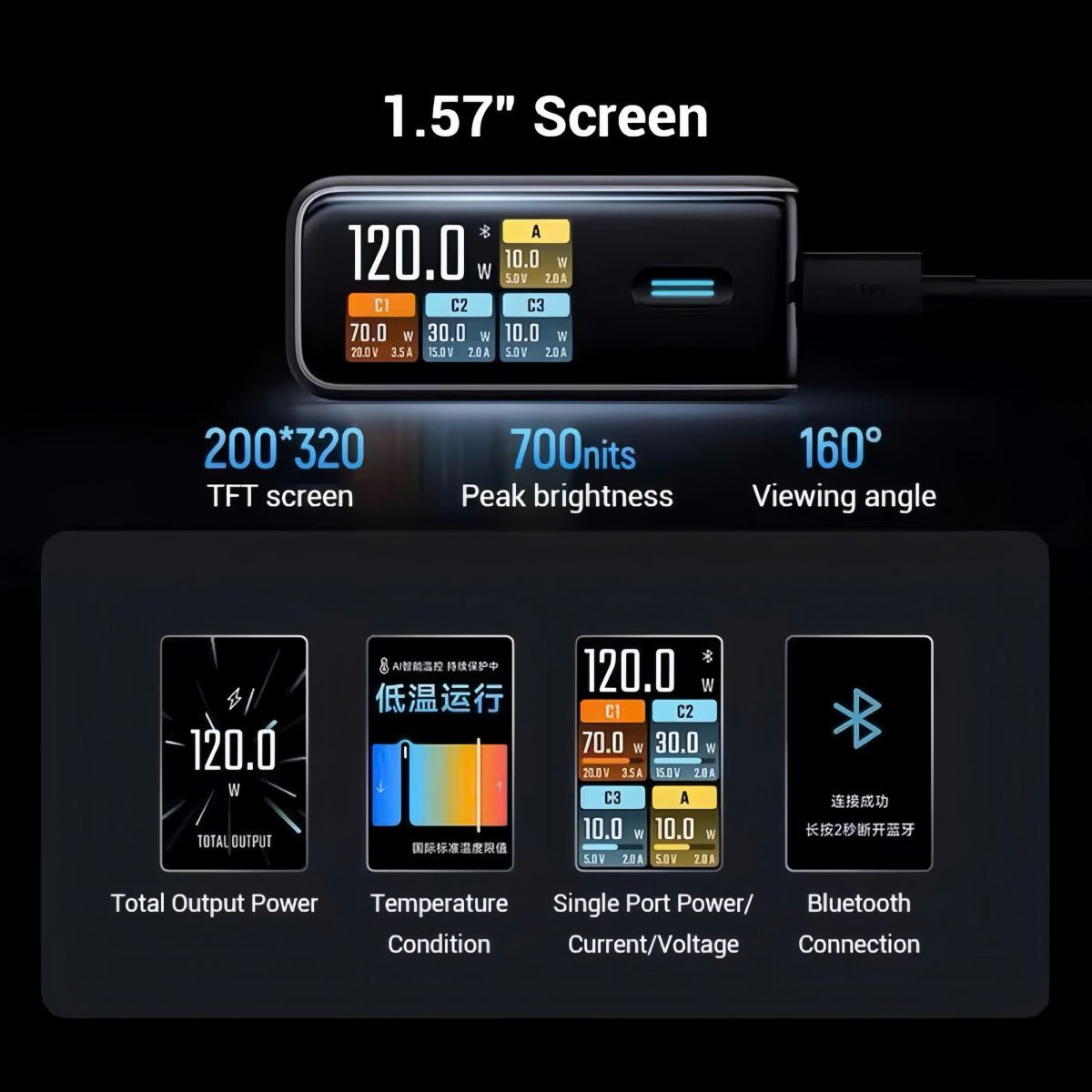 Sạc nhanh CUKTECH 10 Ultra GaN 120W Super Charger – AD1204U là bộ sạc cao cấp trang bị công nghệ GaN tiên tiến, cho hiệu suất sạc mạnh mẽ và ổn định. Với công suất tối đa 120W cùng nhiều cổng sạc đa năng, thiết bị có thể sạc cùng lúc laptop, điện thoại, máy tính bảng và phụ kiện khác. Màn hình hiển thị thông minh giúp theo dõi công suất sạc theo thời gian thực, mang đến trải nghiệm tiện lợi và hiện đại cho người dùng.