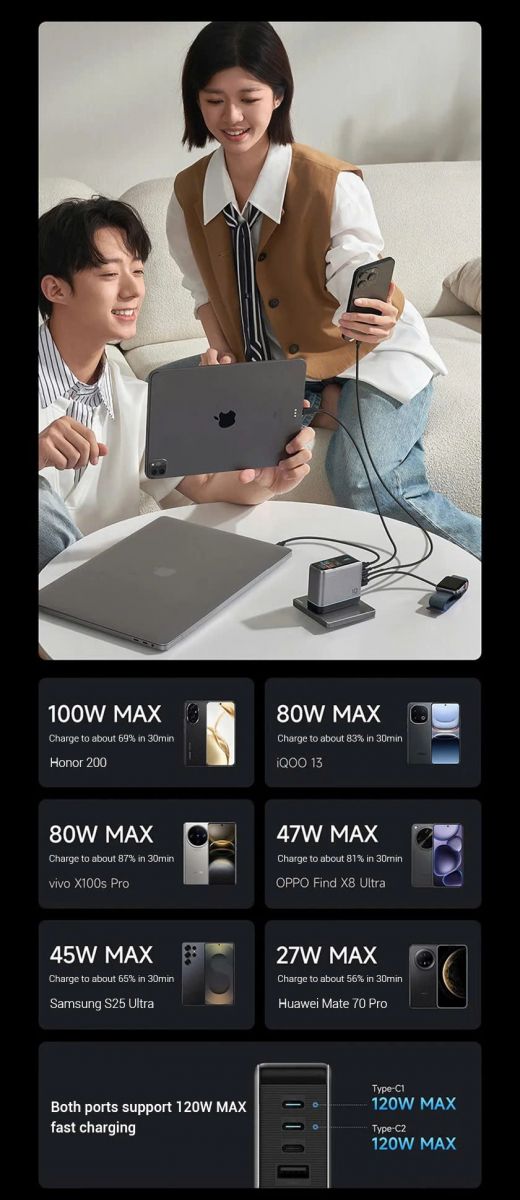 Đáp ứng mọi nhu cầu sạc – từ điện thoại, máy tính bảng đến laptop cao cấp.