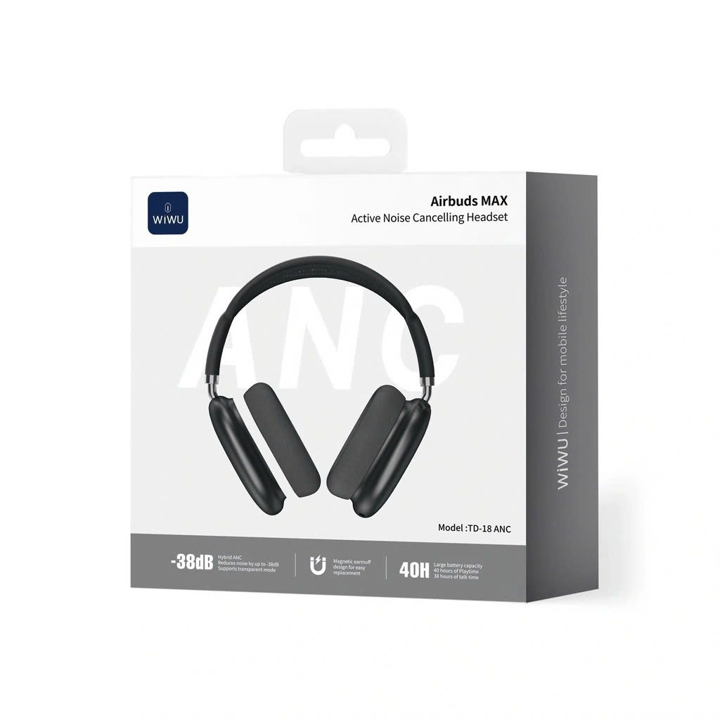 Tai nghe WiWU Airbuds MAX TD-18 ANC mang đến trải nghiệm âm thanh đỉnh cao với khử ồn chủ động (ANC) –38 dB, giúp bạn tách biệt hoàn toàn khỏi tiếng ồn xung quanh, lý tưởng cho học tập, làm việc hay thư giãn. Driver 40 mm tái tạo âm thanh sống động, âm trầm sâu mạnh mẽ cùng dải trung cao chi tiết, phù hợp mọi thể loại nhạc. Đệm tai mềm, chụp tai tháo rời giúp đeo thoải mái lâu dài, dễ vệ sinh. Kết nối Bluetooth 6.0 ổn định, tương thích iOS và Android, pin ~40 tiếng nghe nhạc, sạc đầy chỉ ~1.5 giờ. Với Airbuds MAX TD-18 ANC, bạn sẽ tận hưởng âm nhạc rõ nét, sống động, đeo êm tai và thoải mái suốt cả ngày — lựa chọn hoàn hảo cho mọi nhu cầu sử dụng.