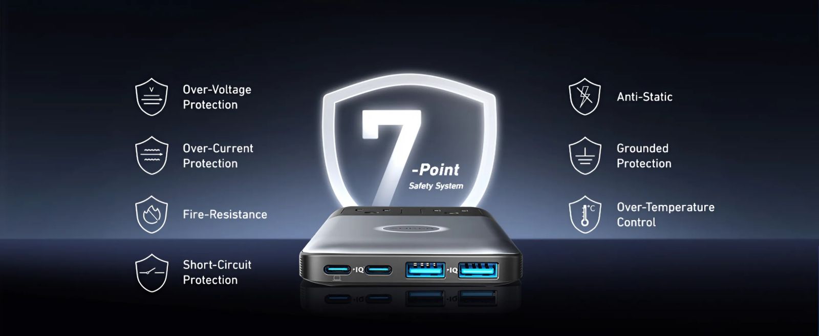 Anker 727 không chỉ sạc nhanh mà còn sạc an toàn. Công nghệ ActiveShield™ 2.0 giám sát nhiệt độ hơn 3 triệu lần/ngày, điều chỉnh công suất để ngăn ngừa quá nhiệt, quá áp và ngắn mạch. Thiết bị luôn trong trạng thái được bảo vệ tối ưu.